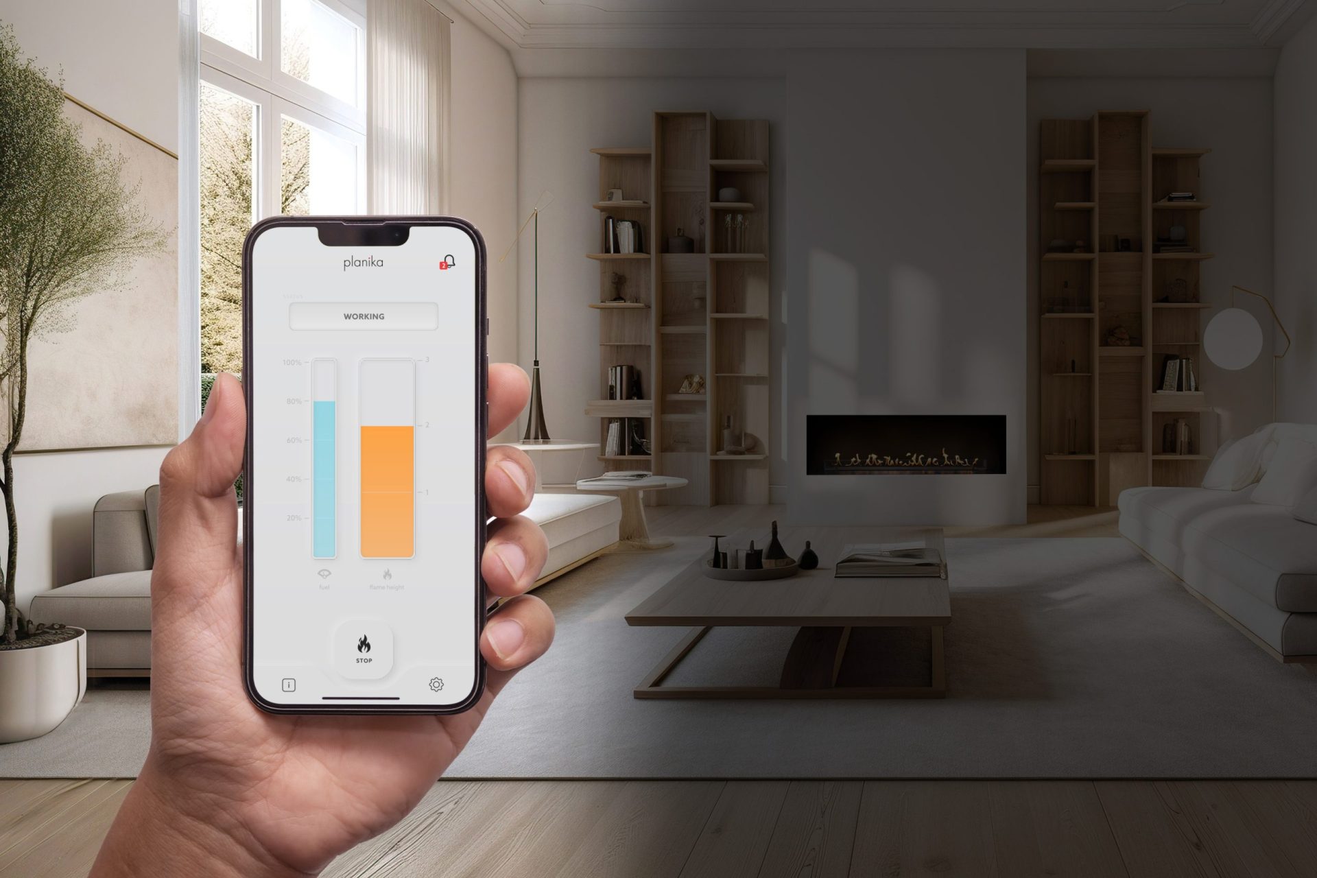 La commande à distance vous donne un contrôle total sur la cheminée sans avoir à vous en approcher – il suffit d’utiliser votre téléphone ou la télécommande pour l’allumer, l’éteindre ou ajuster la hauteur de la flamme. Le panneau externe avec écran LCD et entrée de carburant peut être installé à proximité de la cheminée, permettant un remplissage pratique du réservoir et une utilisation intuitive.