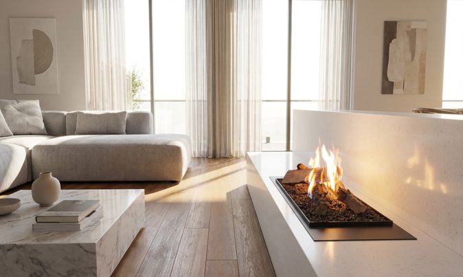 Pas d’inspections de conduit, pas de nettoyage de cendres ou de suie, pas de stockage de bois et pas d’allumage manuel. Une cheminée sans entretien : toujours propre, toujours prête à l’emploi.