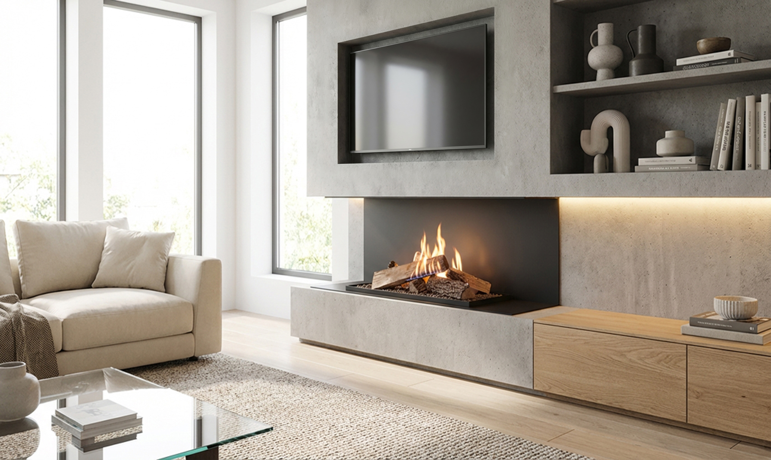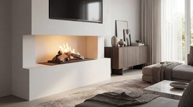 Découvrez Forma — un habillage de cheminée prêt à l’emploi permettant l’utilisation sécurisée de matériaux de finition combustibles et éliminant la nécessité d’encastrer le téléviseur dans le mur, offrant ainsi une plus grande liberté d’aménagement.