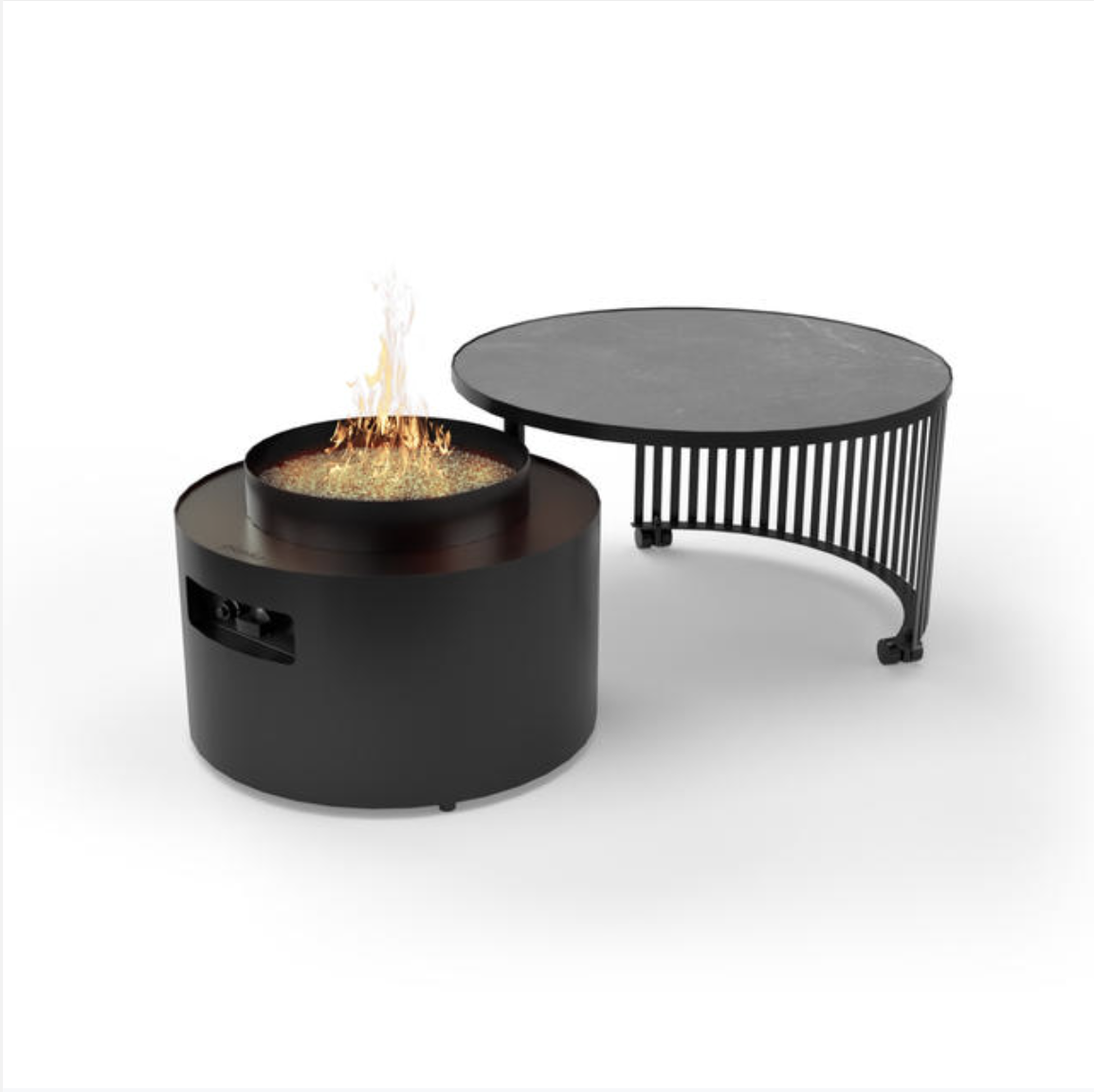 Pivot Fire Table par Planika – une fusion ingénieuse de forme et de fonction.